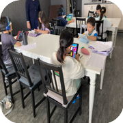 通室クラスでは、お友達と、じかにお話ししながら、楽しくわいわい授業を行います。